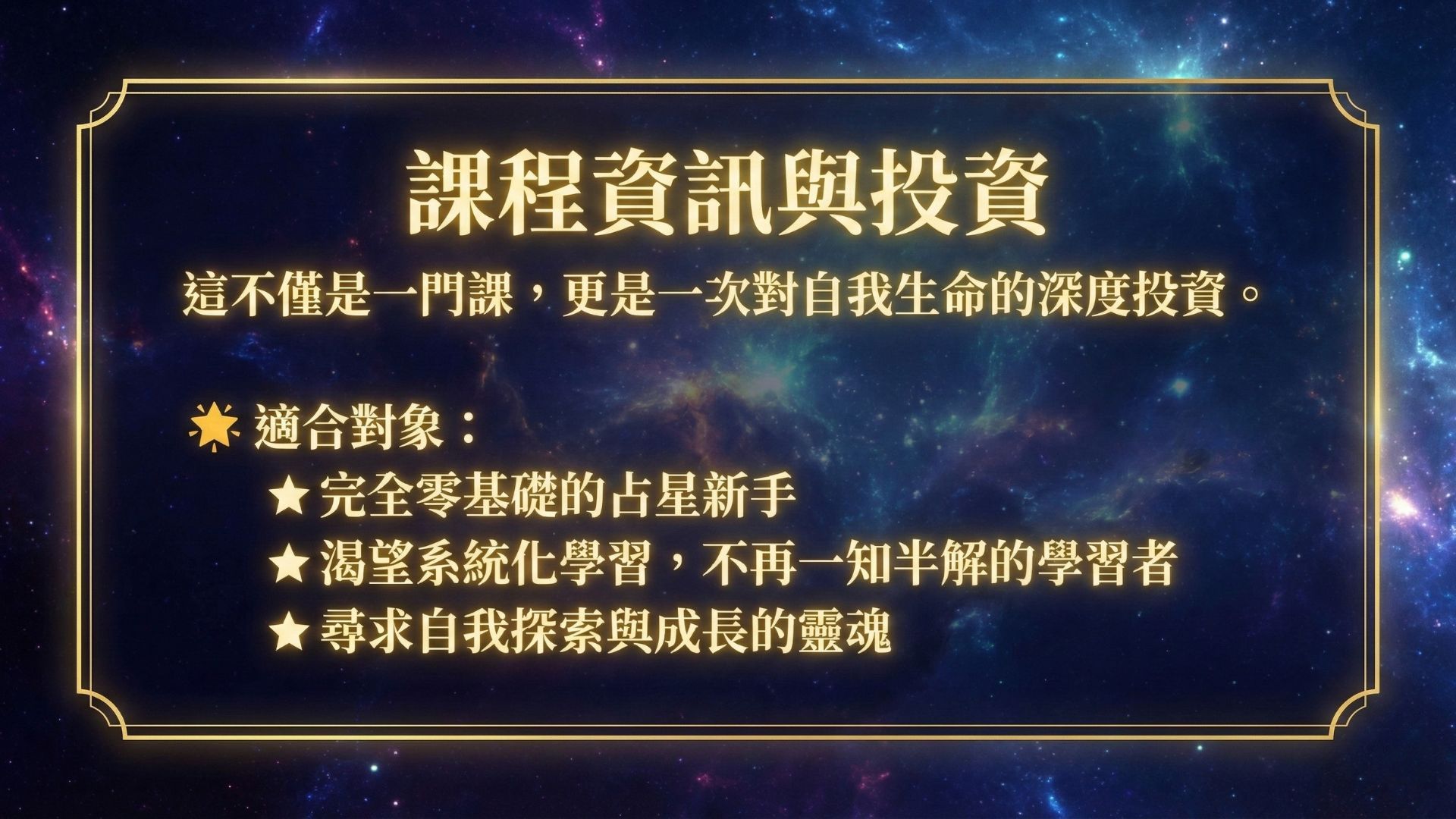 本網站不屬於 Facebook 網站或 Facebook Inc.。此外,本網站未以任何方式獲得 Facebook 的認可。 FACEBOOK 是 FACEBOOK, Inc. 的商標。由 宇宙學院 (Universe Academy) 做出的收入和收入陳述僅是理想陳述,不應被誤認為是任何形式的保證。 您對自己的行動和決定承擔全部責任。 這些結果並不典型,結果會有所不同。 此頁面上的結果來自 宇宙姐姐 Christine Cheng 和 宇宙學院 的作品。我們絕對不能保證您會得到與上面類似的結果。 請參閱我們的條款和條件,了解我們的完整免責聲明和其他限制。宇宙學院保有對所有課程的最終決定權。